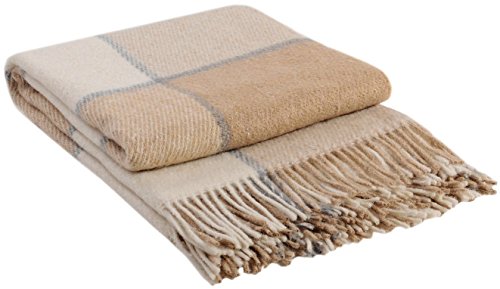 Why Use Plaid Throw Blanket by Vladi * Pure 100% New Zealand ELF Sheep Wool * Classic Scottish Tartan Cross-Line Pattern in Beige * 55" x 79" 140x200cm * Soft, Durable, Plaid Pattern with End Fringes. ?