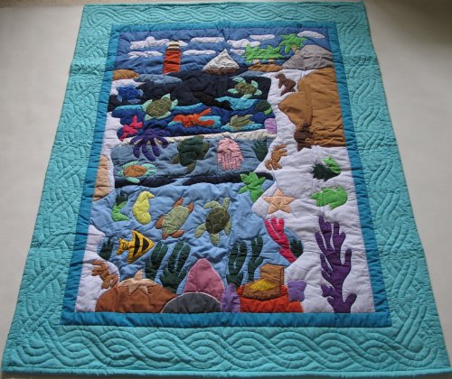 Why Use Hawaiian Quilt Baby Blanket/Wall Hanging, hand quilted and machine embroidered UNDERSEA/LIGHT HOUSE ?