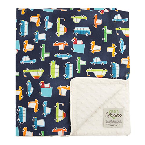 Why Use My Blankee Road Trip Organic Cotton Navy w/ Minky Dot Cream Baby Blanket, 30" X 35" ?