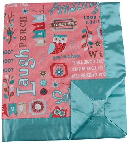 My Blankee Owl Word Minky Coral w/ Minky Dot Aqua Baby Blanket, 30" x 35"